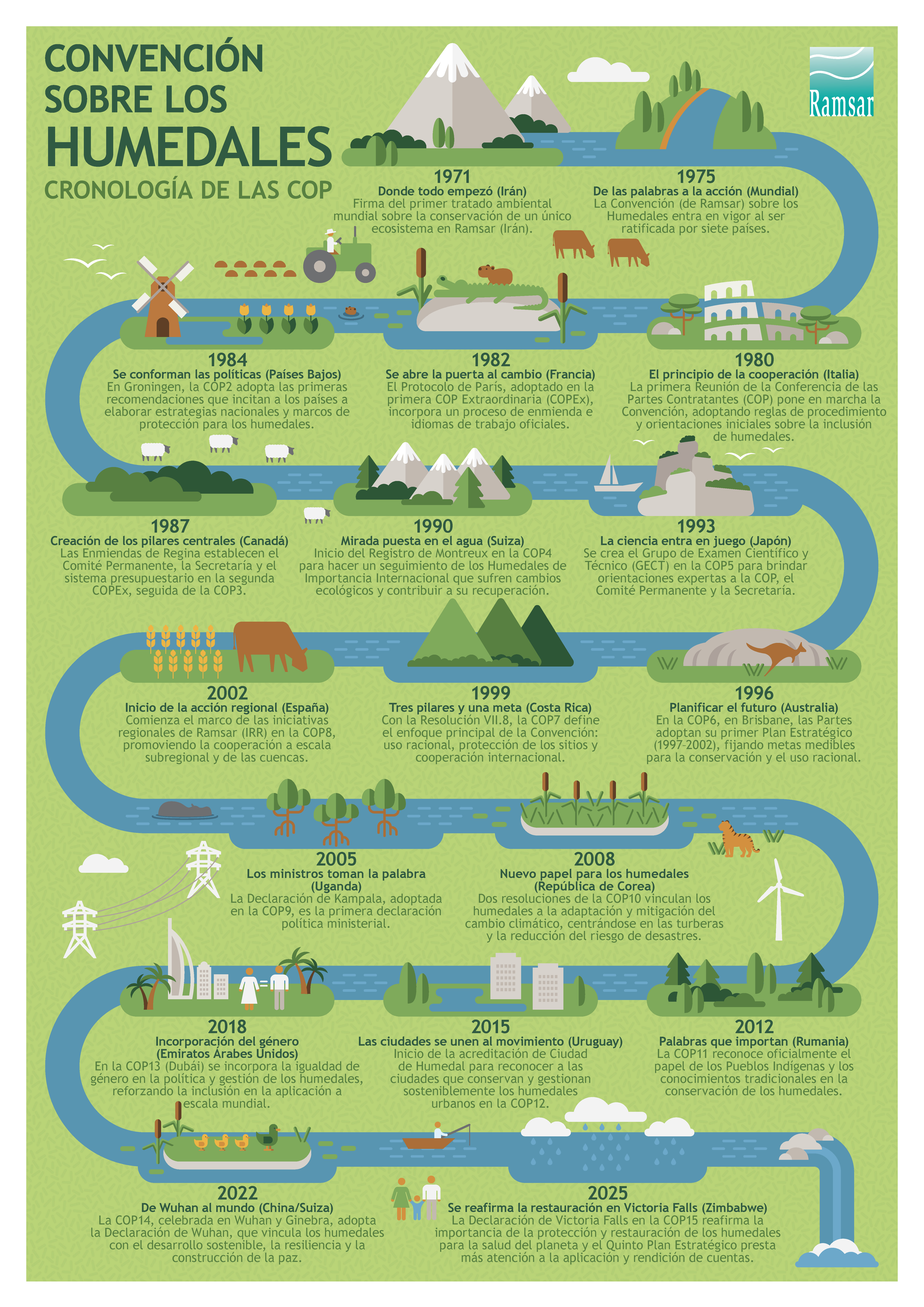 Este año también elaboramos un calendario exhaustivo de nuestras reuniones de la Conferencia de las Partes Contratantes en el que se recoge la evolución de la Convención. El calendario refleja más de cinco décadas de colaboración, aprendizaje y ambición compartida, y me complace divulgarlo entre ustedes como recordatorio de lo que hemos avanzado y lo que aún podemos lograr juntos.